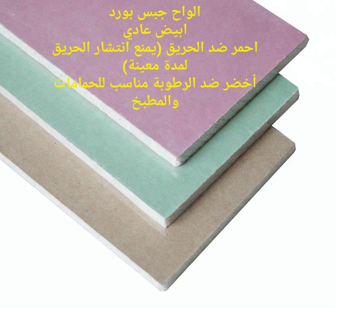 الجبس بورد: مكون من الجبس مع طبقتين من الورق المقوى.