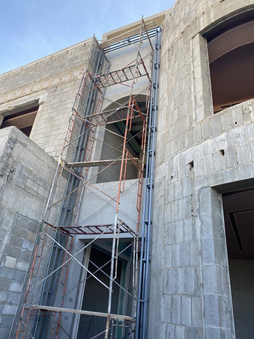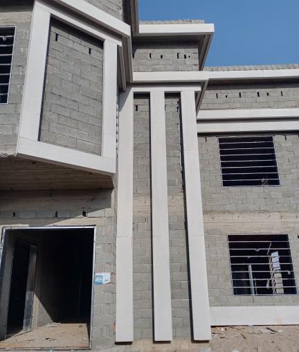 تغطية سقف بروز الدور الأول عن الأرضي: في الواجهات الخارجية يتم استخدام أسمنت بورد لتغطية السقف بشكل عملي.